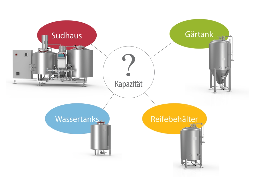 Es gibt einen wichtigen Unterschied zwischen der Kapazität des Sudhauses und Kapazität der Brauerei. Große Kapazität des Sudhauses kommt Ihnen nicht zugute, wenn Sie nicht auch über entsprechende Anzahl von Lagereinheiten für die Würze verfügen. Sie können nur so viel Würze brauen, als Sie leere Behälter für die Gärung und Lagerung zur Verfügung haben.