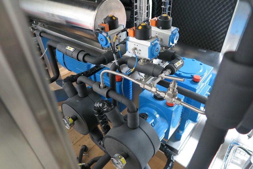 V naše sisteme vgrajujemo membranske črpalke svetovno najbolj priznanega proizvajalca, Lewa Nikkiso. Pri omenjenih črpalkah je zelo pomemben podatek, da zagotavljajo popolno inertnost ob stiku z različnimi vzorci, saj so materiali, ki prihajajo v kontakt, iz nerjavnega jekla ter teflona (PTFE). Zaradi svoje velike zanesljivosti in robustnosti tovrstne črpalke ponujajo eno izmed najfleksibilnejših in najenostavnejših črpalnih rešitev, kar pomeni, da so izvrstno orodje za rokovanje z zelo velikim razponom tekočin. Zaradi robustne konstrukcije (teža črpalke kapacitete 200 kg/h znaša 700 kg) se najpogosteje uporabljajo v petrokemiji ter na naftnih ploščadih, kjer so pogosto prisotne ekstremne delovne razmere zaradi kontakta z visokokorozivnimi snovmi ter zaradi nenehne izpostavljenosti slani atmosferi. Prav izjemne lastnosti teh črpalk so bile odločilne pri naši izbiri, saj zagotavljajo zanesljivost delovanja ob nizkih stroških vzdrževanja pri črpanju superkritičnih tekočin.