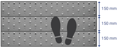 | Standard zahteva, da se pohodna pločevina (rešetka) pri hoji ne upogiba več kot 4 mm. Pri pločevinasti rešetki širine več kot 150 mm je to težko doseči. |